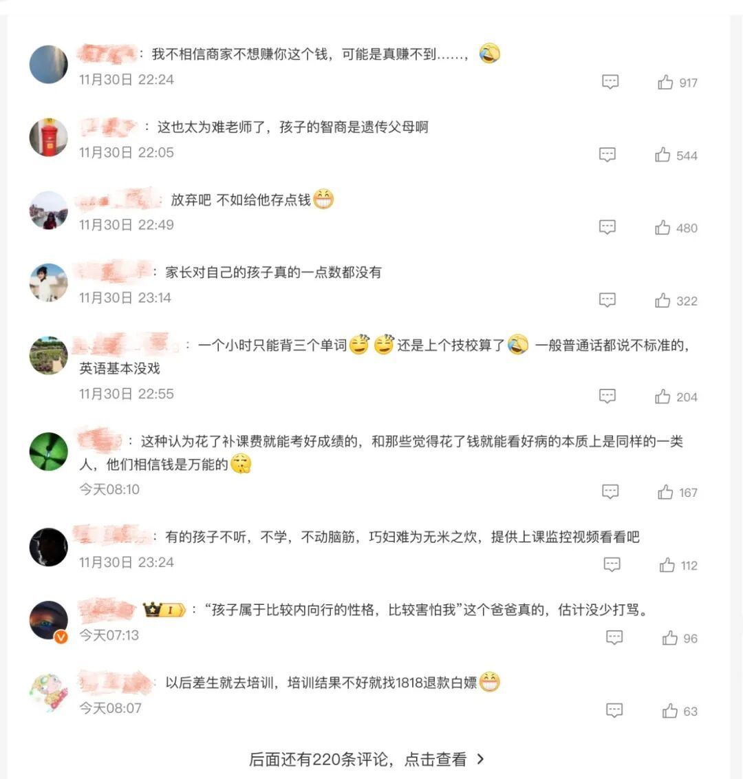 报道发出后,网友认为,孩子的教育不能单靠培训班,孩子的家长也要起到很大作用。