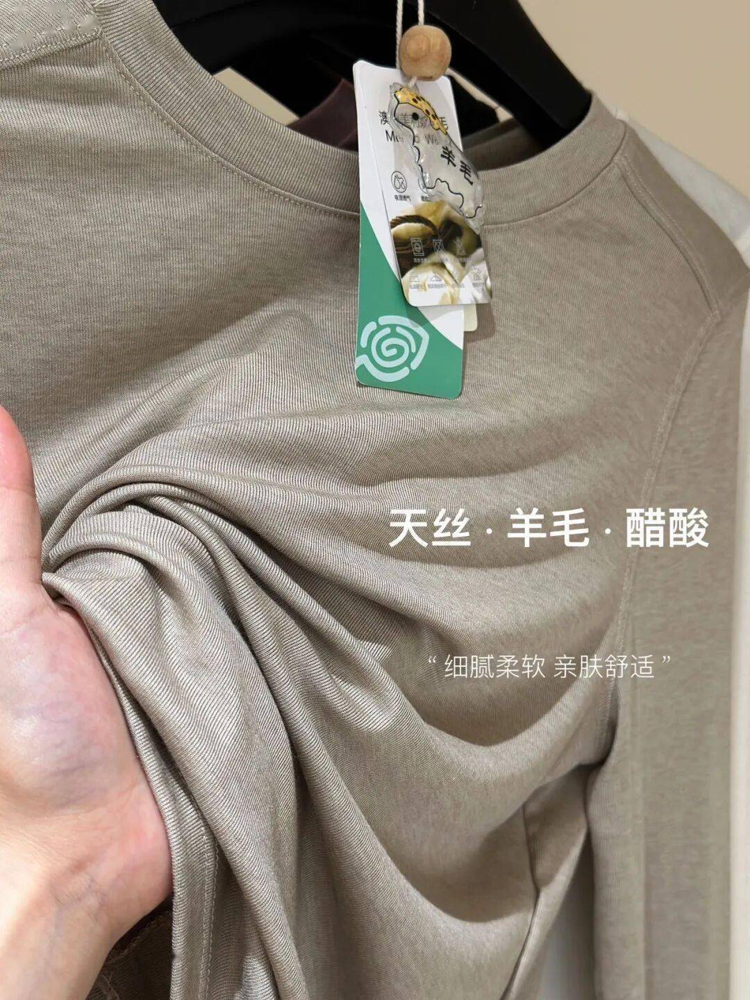 穿在身上轻柔丝滑、不闷不燥,仿佛大自然的呼吸就在肌肤之上,整体柔中带骨,不易起球,日常不需要穿得很小心,特别好打理。