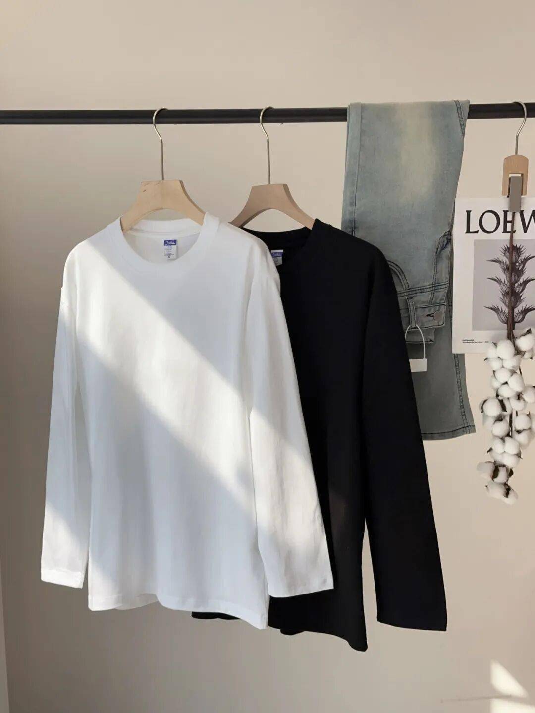 简单两色,却能承包一年四季的大部分穿搭场景。250g高克重,面料非常重磅,白色也不透肉~