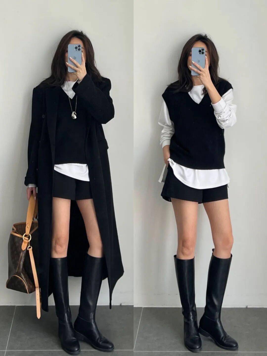 女生配西装或大衣干净有气场,叠穿马甲年轻活力有层次感;男生做内搭清爽利落。黑白两色经典不过时。