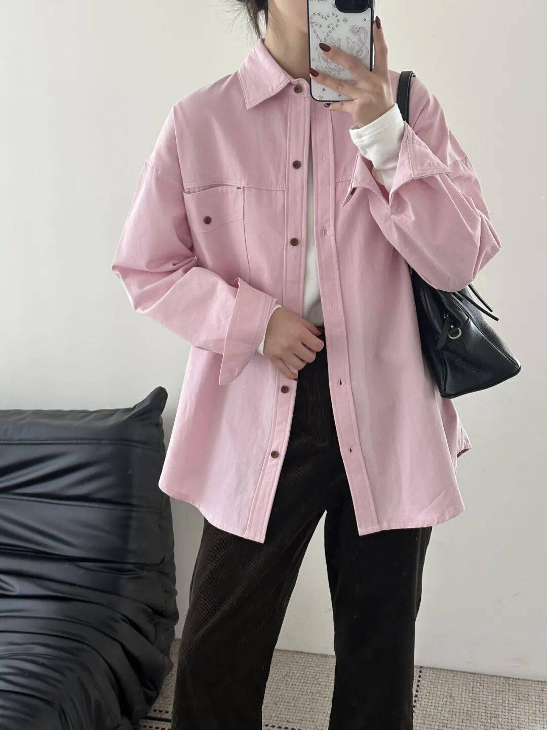 ✅ 冷调玫瑰粉|撞色打枣果实扣|宽松阔版