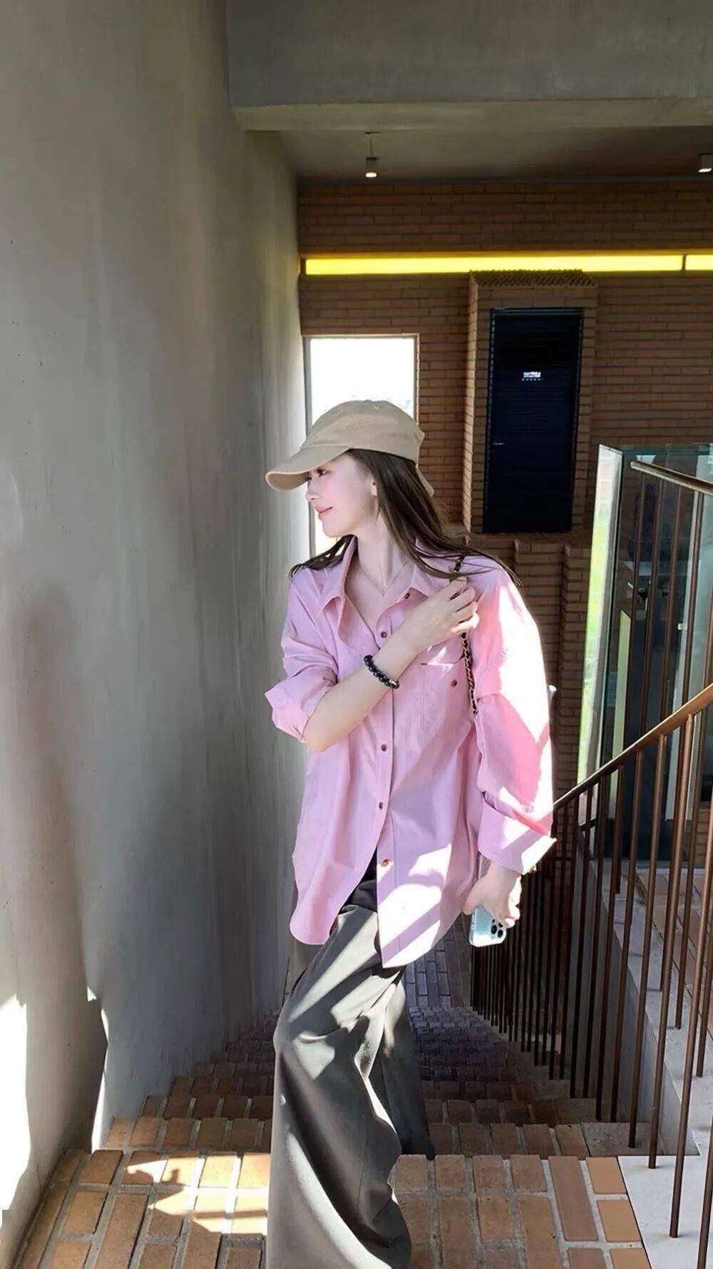 日常随意搭配一条利落的阔腿裤或是优雅的裙子,特别是尝试当下很火的“粉色+棕色”色彩美学组合,随便一拍都能定格出明媚动人的瞬间。