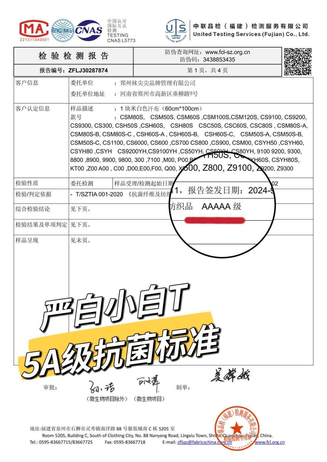 5A级全衣抗菌处理(见报告),贴身穿更安心。